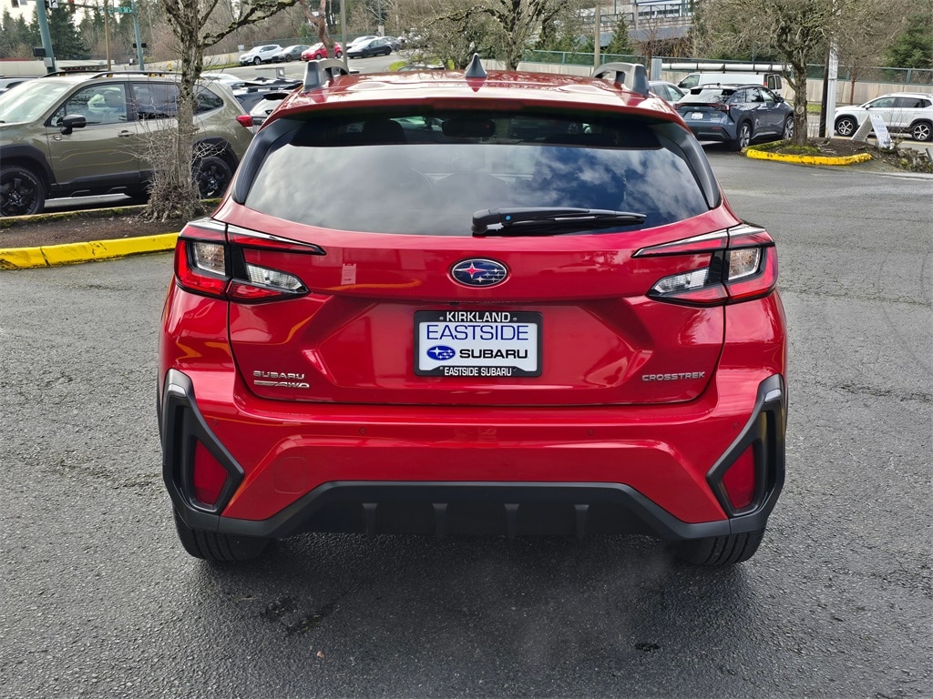 Subaru Certified Pre-Owned Certified, 4-Wheel Disc Brakes, 6 Speakers, ABS brakes, Air Conditioning, Alloy wheels, AM/FM radio: SiriusXM, Anti-whiplash front head restraints, Auto High-beam Headlights, Auto-Dimming Exterior Mirror w/Approach Light, Auto-Dimming Mirror w/Compass & HomeLink, Automatic temperature control, Brake assist, Bumpers: body-color, Crosstrek Mirror Package, Driver door bin, Driver vanity mirror, Dual front impact airbags, Dual front side impact airbags, Electronic Stability Control, Emergency communication system, Exterior Parking Camera Rear, Four wheel independent suspension, Front anti-roll bar, Front Bucket Seats, Front Center Armrest, Front dual zone A/C, Front fog lights, Front reading lights, Fully automatic headlights, harman/kardon Audio & Power Moonroof, harman/kardon Surround Sound Speaker System, Heated door mirrors, Heated Front Bucket Seats, Heated front seats, Illuminated entry, Knee airbag, Leather Shift Knob, Leather steering wheel, Leather-Trimmed Upholstery, LED Upgrade, Lithium Red Body Side Molding, Low tire pressure warning, Occupant sensing airbag, Outside temperature display, Overhead airbag, Overhead console, Panic alarm, Passenger door bin, Passenger vanity mirror, Power door mirrors, Power driver seat, Power Moonroof, Power steering, Power windows, Radio data system, Radio: Subaru 11.6" Multimedia Plus System, Rear anti-roll bar, Rear seat center armrest, Rear window defroster, Rear window wiper, Remote keyless entry, Security system, Speed control, Speed-sensing steering, Split folding rear seat, Spoiler, Steering wheel mounted audio controls, Tachometer, Telescoping steering wheel, Tilt steering wheel, Traction control, Trip computer, Turn signal indicator mirrors, Variably intermittent wipers, Wheels: 18" x 7.0" J Machine Finish Aluminum-Alloy.